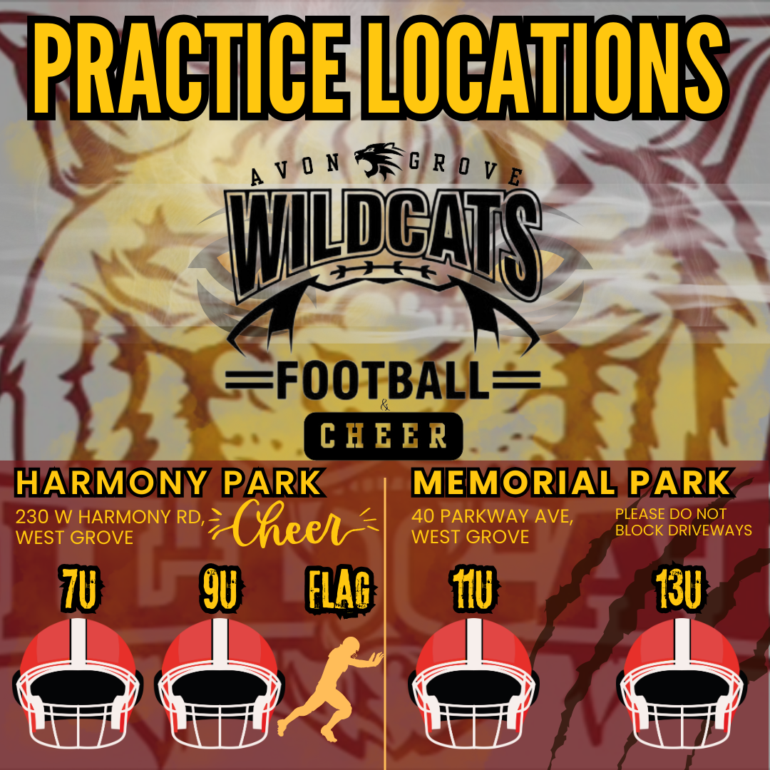 FIELD DIRECTORY Contact Avon Grove Wildcats PO BOX 103 West Grove, Pennsylvania 19390 Email: info@agwildcats.com Site Links Wildcat FAQs IYFL Registration Locations About Us